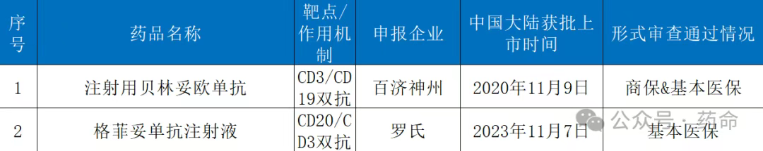 今年共有格菲妥单抗、贝林妥欧单抗两款双抗药物通过形式审查。