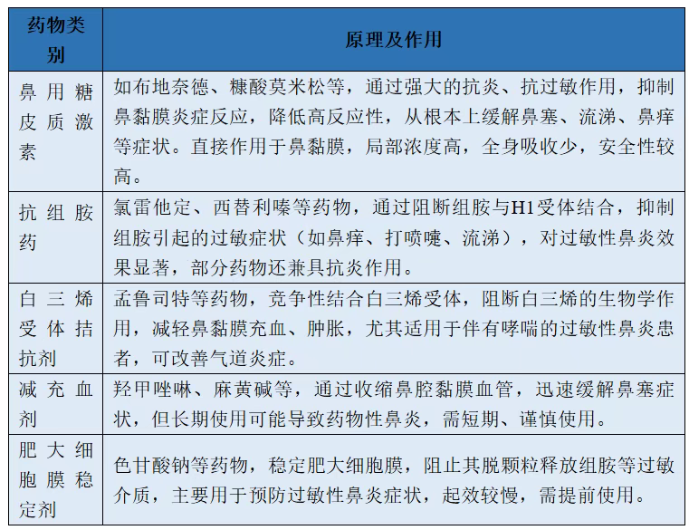 鼻炎是鼻腔黏膜的炎症性疾病,常见症状包括鼻塞、流涕、鼻痒、打喷嚏等。不同类型的鼻炎(如过敏性鼻炎、慢性鼻炎等)用药原理各有侧重,但核心目标都是减轻炎症、缓解症状。下表是常见药物的原理及作用。