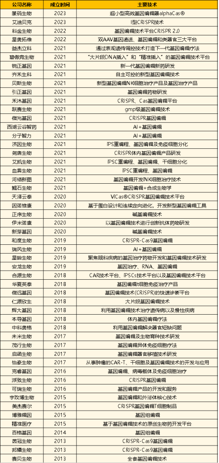 表:中国基因编辑企业