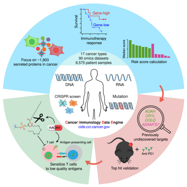研究人员通过癌症免疫学数据引擎(CIDE)整合90个免疫肿瘤组学数据集,涵盖17种实体瘤的8575份肿瘤样本,发现AOAH是增强免疫治疗应答的关键因子。