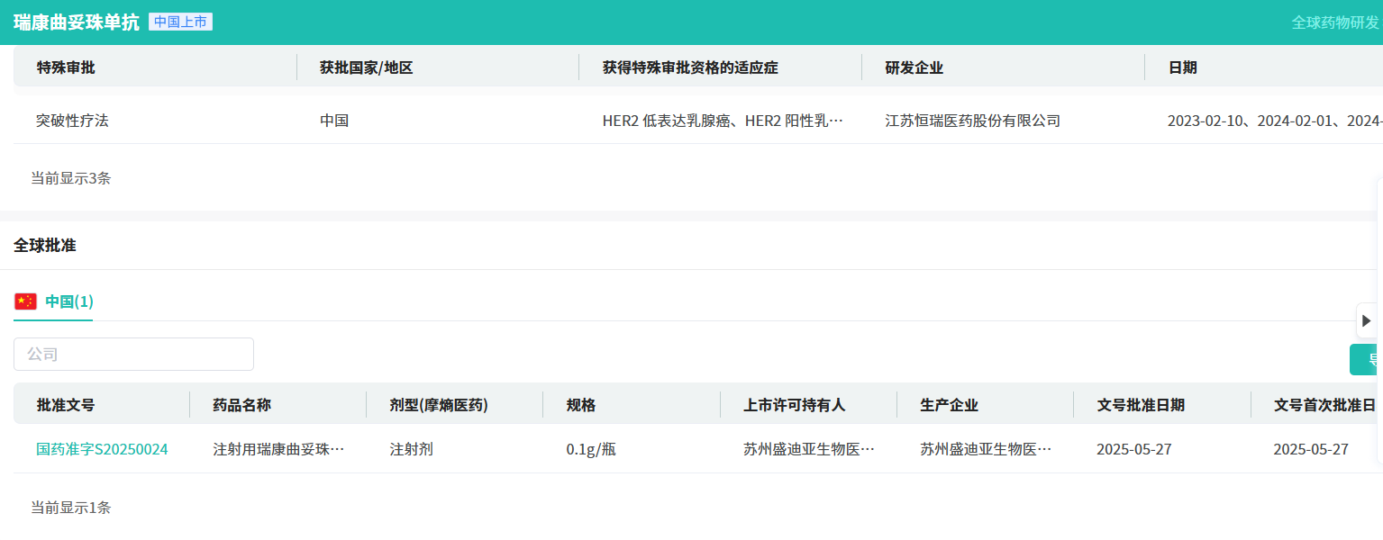 9月18日,恒瑞医药公告称,其子公司苏州盛迪亚生物医药收到国家药监局《受理通知书》,该公司的注射用瑞康曲妥珠单抗(SHR-A1811)上市许可申请已获受理,并被纳入优先审评程序。该药物此次申报的适应症为:针对既往接受过一种或多种抗HER2药物治疗的局部晚期或转移性HER2阳性成人乳腺癌患者。
