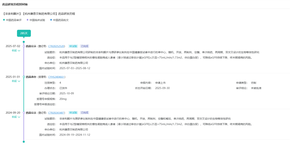 值得注意的是,此次CDE连发补机会都没给,直接下发了通知件。康恩贝是首家未批准企业,回顾康恩贝的药品研发历程时间,从首次临床到申报收件,全程历时不足一年。