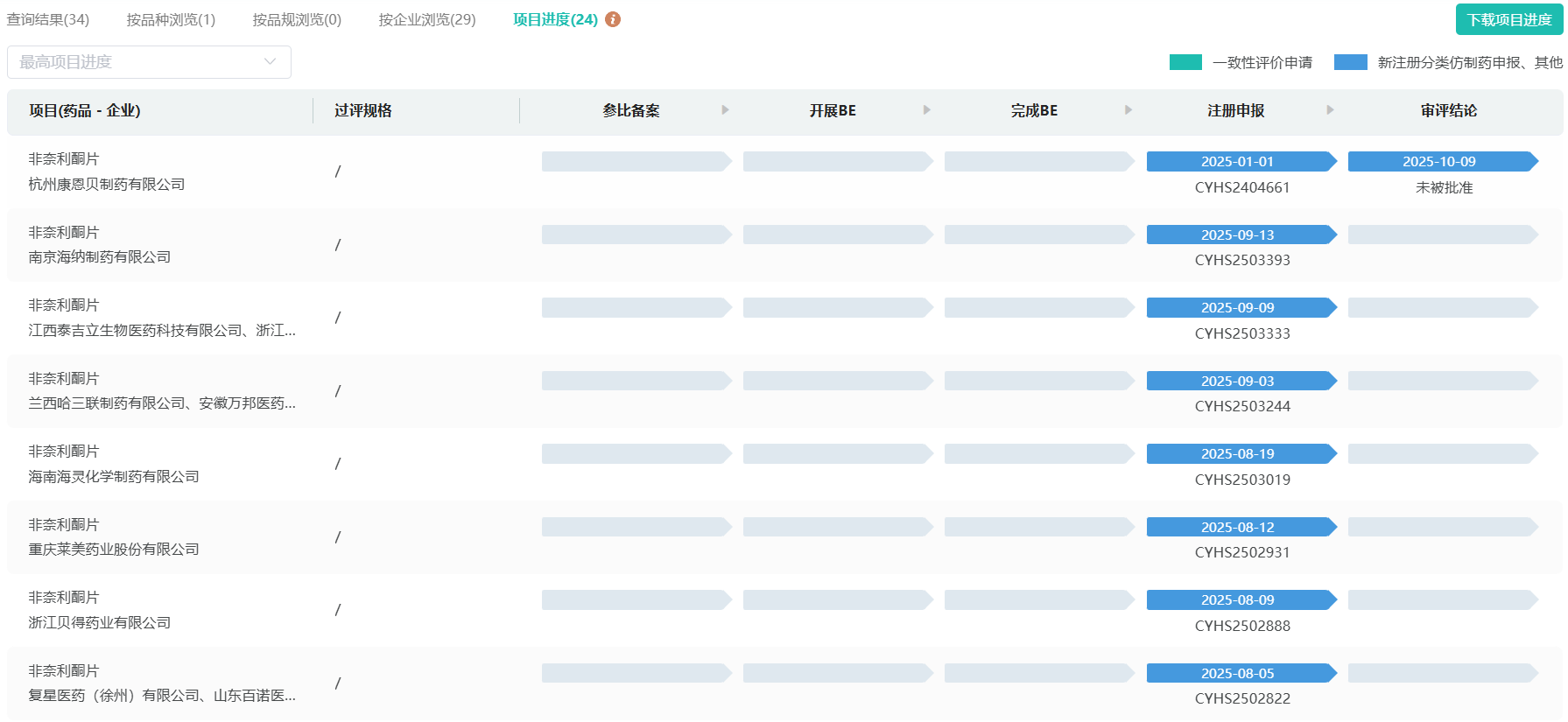 虽然目前,非奈利酮片距离前任“神药”的市场规模还有一定距离,但如此高的市场增长率和销售预期,依然引起了国内仿制药企业的注意。即使该品种专利要到2028年才到期,也不妨碍多家仿制药企业提前布局。