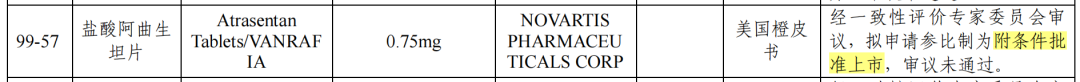 附条件批准情况在FDA十分常见。盐酸阿曲生坦片批准信显示,该药品于2025年4月2日基于替代终点(降低蛋白尿) 通过加速批准途径获批,其完全批准仍取决于正在进行的确证性临床试验,预计2026年完成。