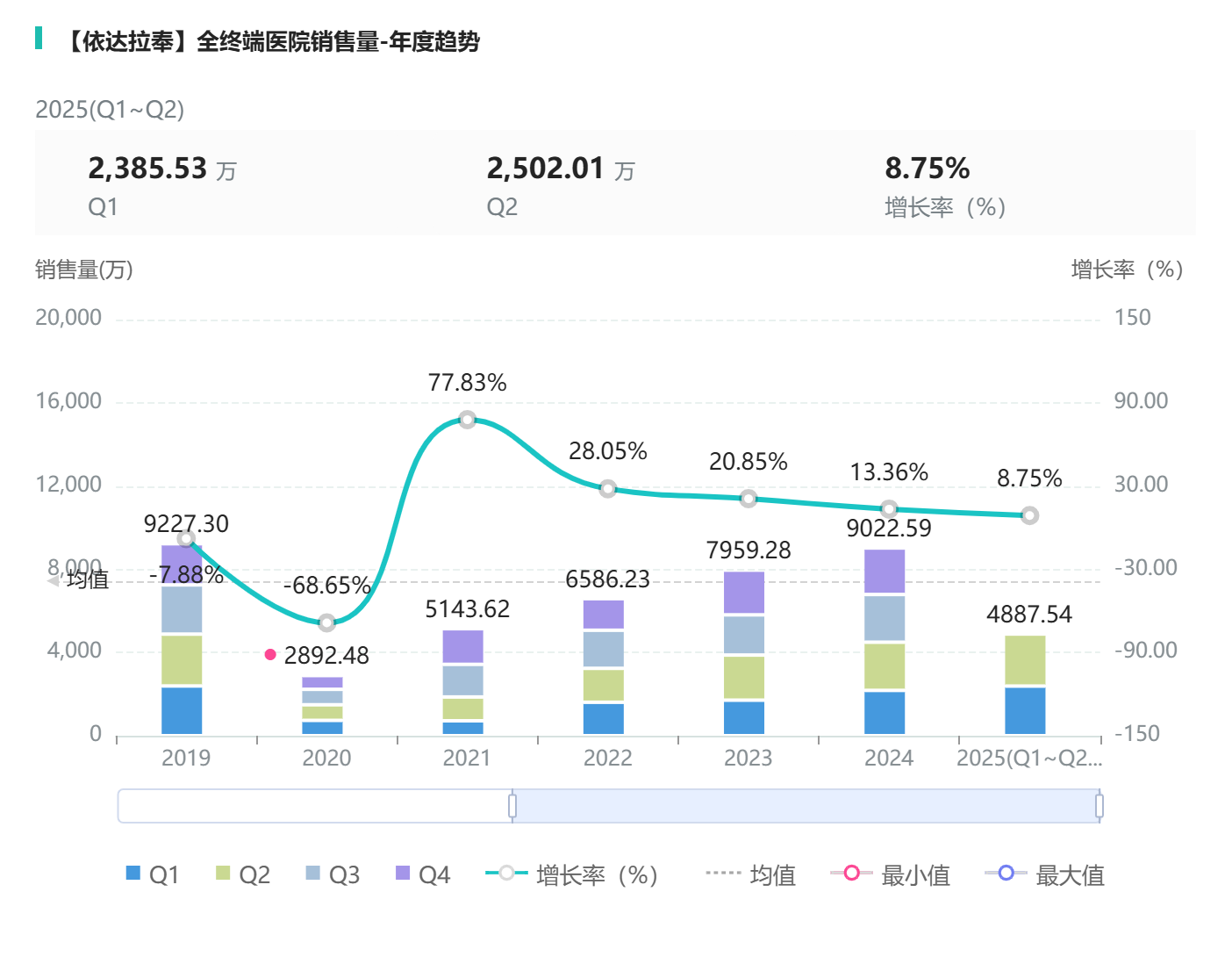 销售量逐渐回升,已经回到19年的同等水平,可见医生和患者对依达拉奉成分的需求一直都在,只是替换了迭代产品。