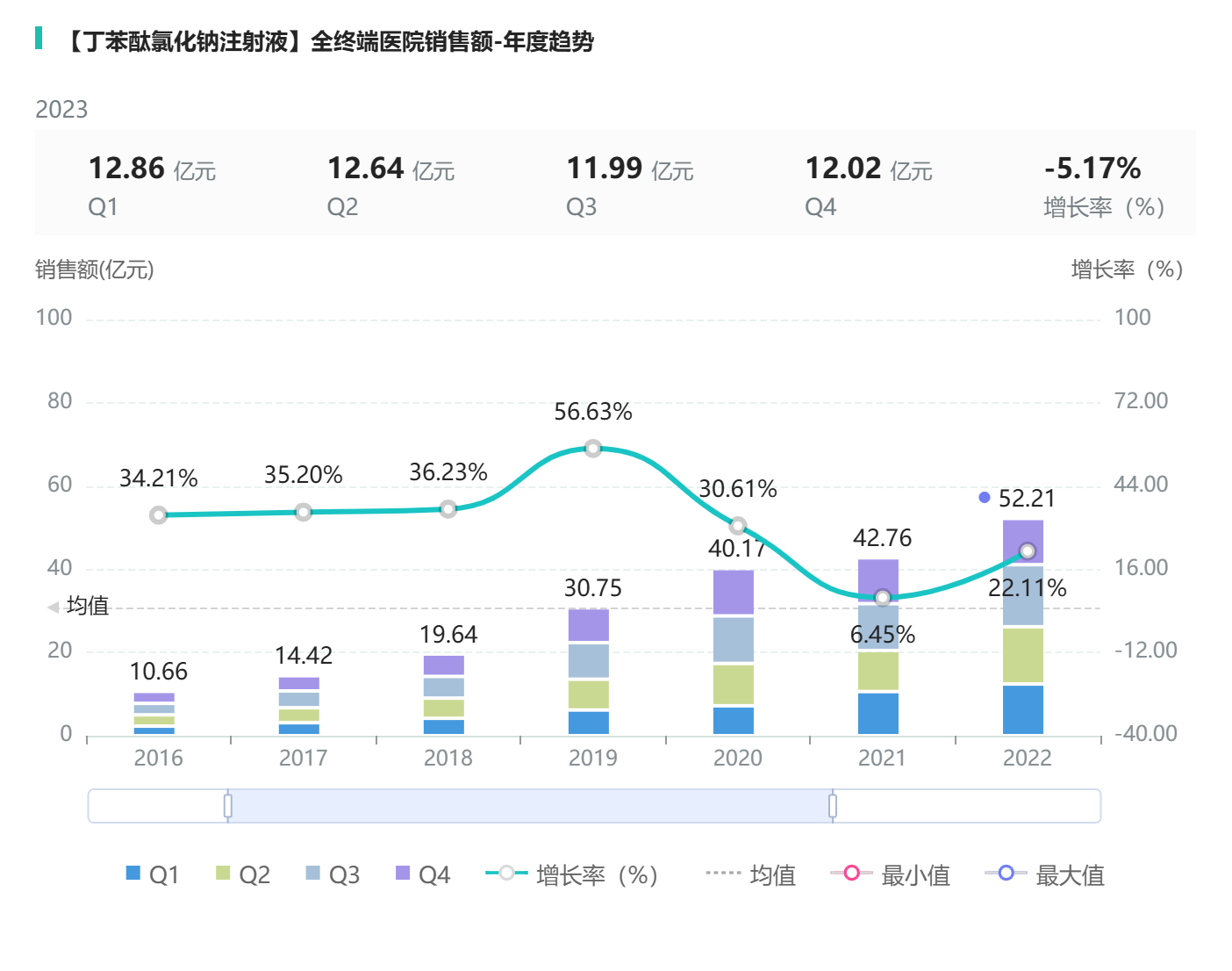 只可惜,依达拉奉右莰醇需求量虽升高,但销售额已经难以回到曾经辉煌时期的水平。而丁苯酞由于近年国谈价格下降,整体销售额有所小幅下滑,但整体销售额依旧很稳定。