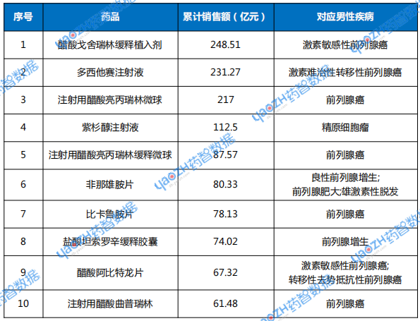 表1 男科药物销售额TOP10