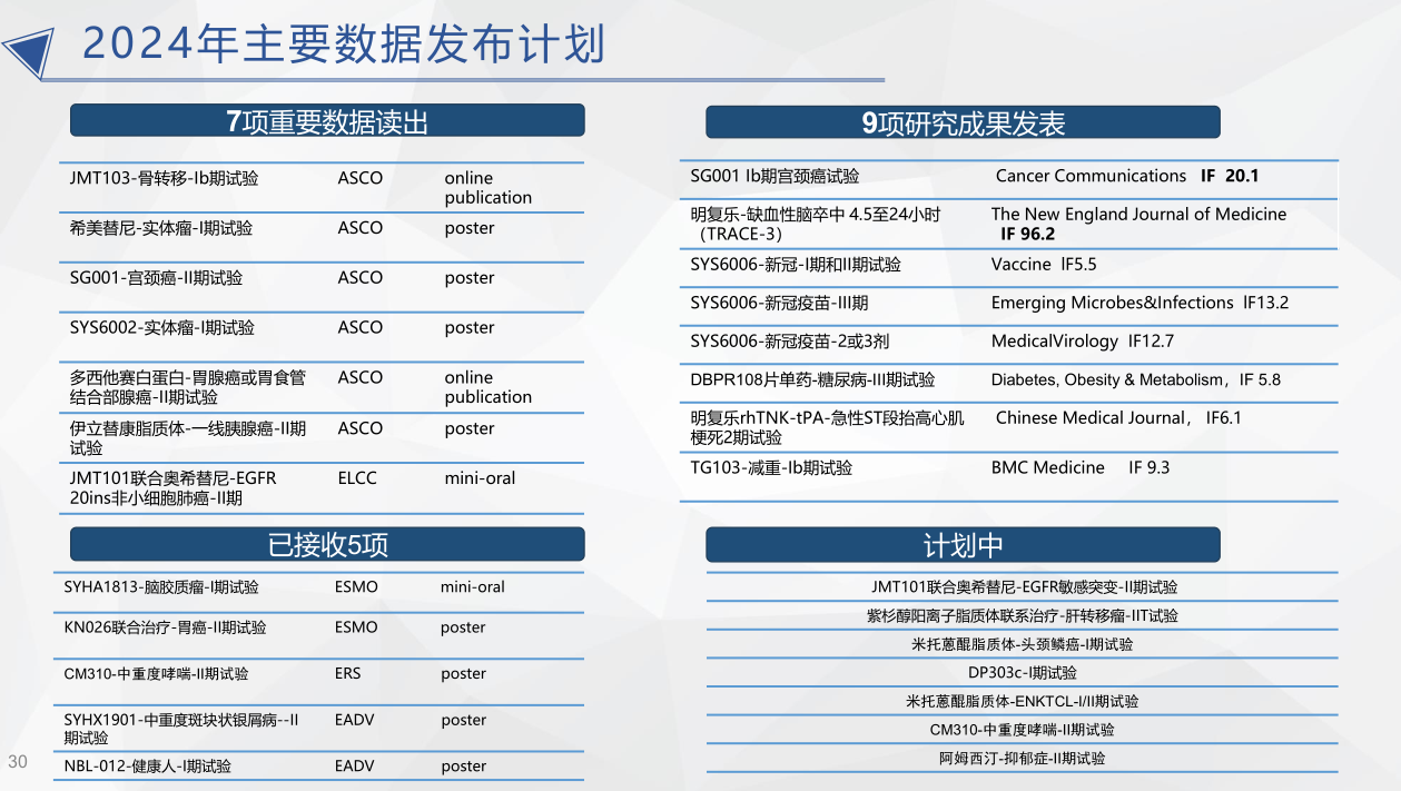 JMT101:重组人源化抗表皮生长因子受体单克隆抗体注射液,2024年4月,在中国启动JMT101联合奥希替尼对照顺铂联合培美曲塞用于治疗一线EGFR 20号外显子插入突变的NSCLC 患者的Ⅲ期试验,目前处于入组阶段。