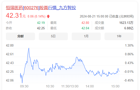 8月21日,恒瑞医药公布2024年半年报,公司上半年实现营收136.01亿元,同比增加21.78%;实现归母净利润34.32亿元,同比增加48.67%;实现扣非归母净利润34.90亿元,同比增加55.58%。研发费用30.37亿元,同比增长30.3%。