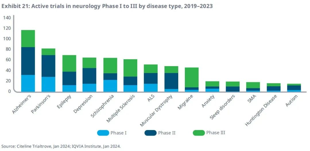 ▲2019-2023年神经病学I-III期活跃试验
