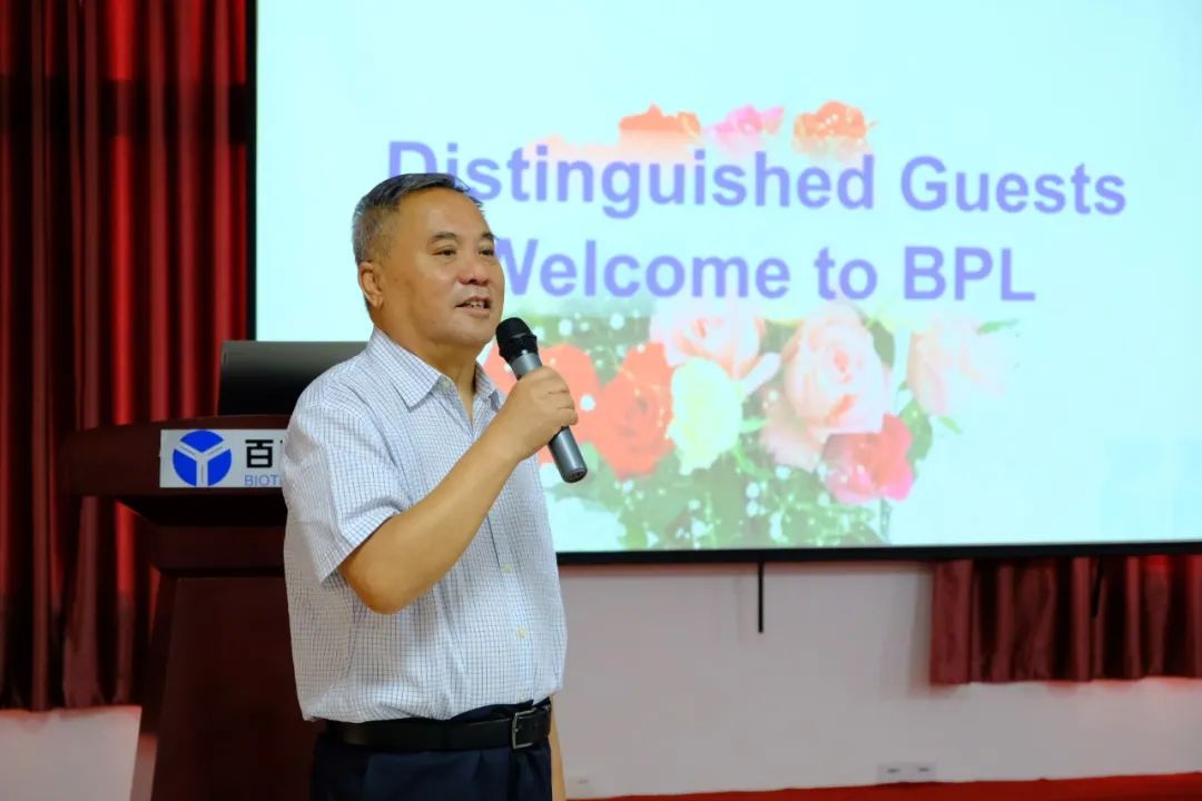 百泰生物白先宏董事长对“一带一路”远道而来的各国官员表示热烈欢迎,他提出加强同一带一路国家合作,投资建厂,将中国的优质抗体药物带到当地,从而提高当地人民的健康水平。