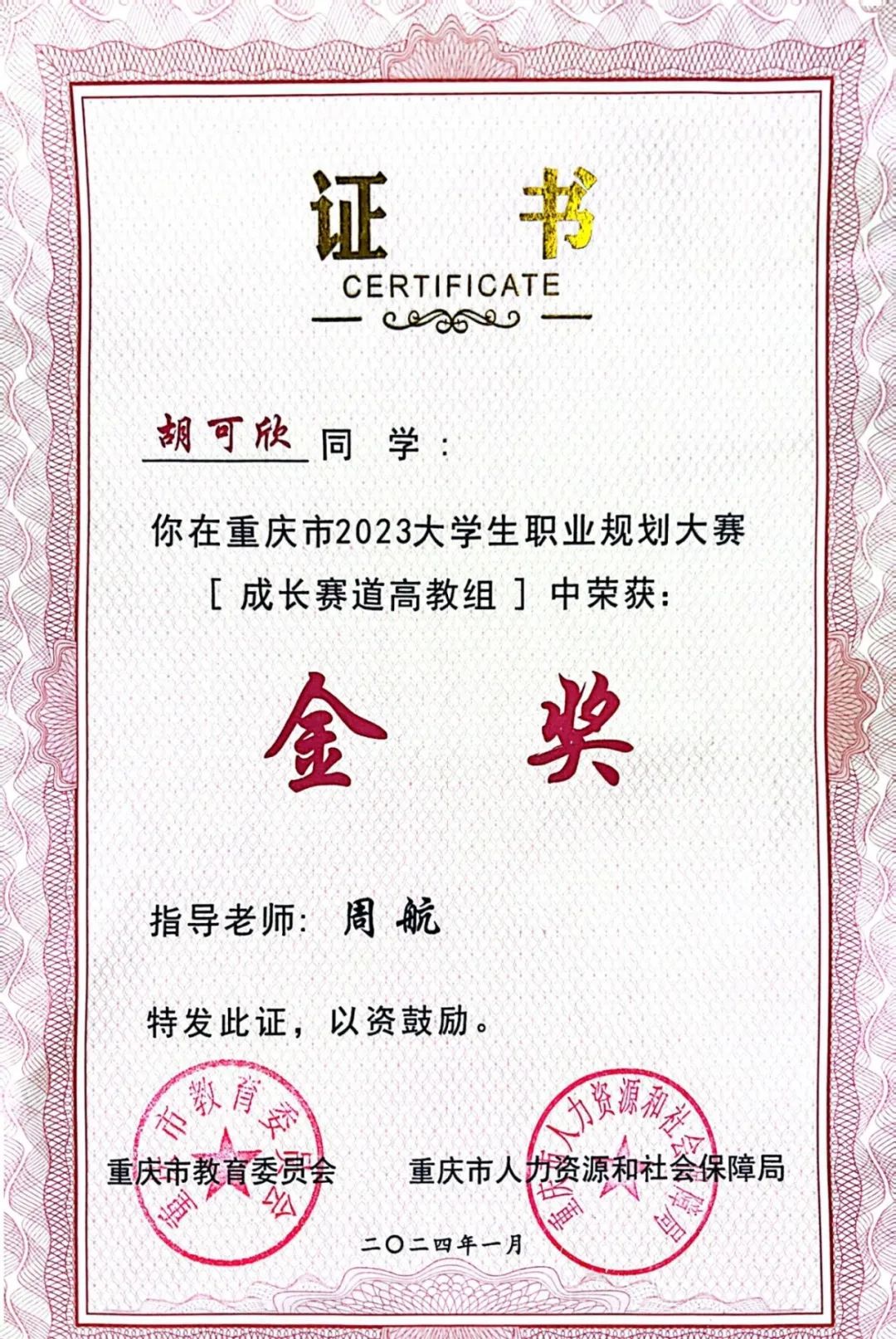 在大二学期,胡可欣凭借优异的专业成绩和瑜伽特长,在全国大学生职业规划大赛中崭露头角,获得校赛金奖并直通市赛,最终赢得市级金奖的荣誉。彼时的她,以初生牛犊之势,在赛场上展现出过人的自信与潜力。