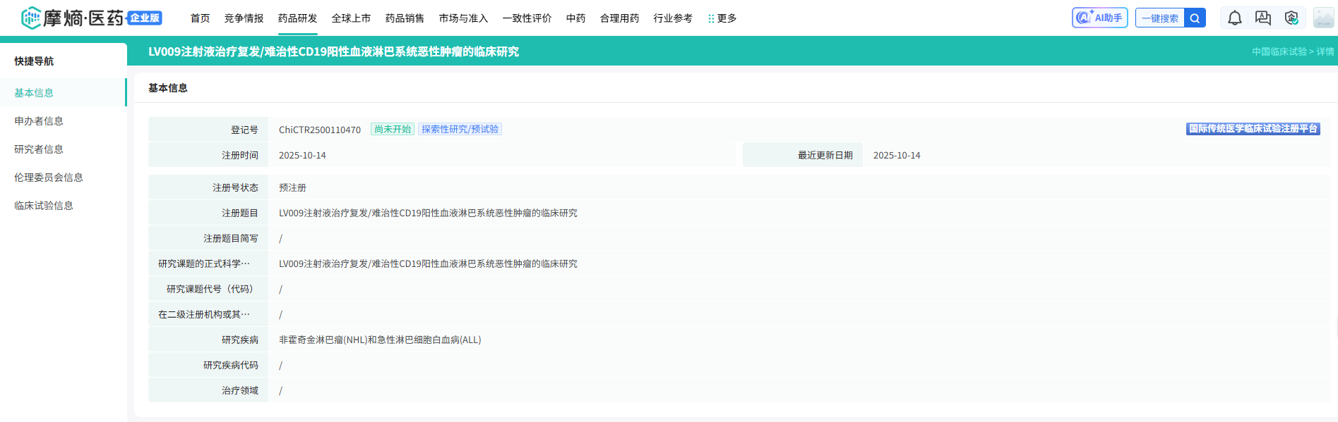截图来源:摩熵医药数据库-中国临床试验数据库
