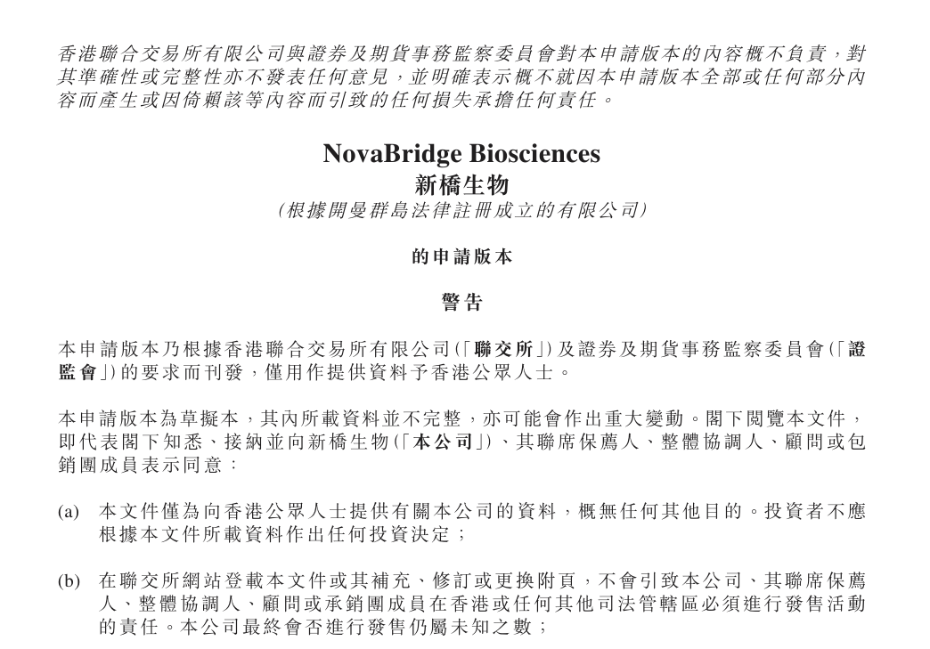 10月31日,中国生物科技企业新桥生物-B正式向港交所主板提交上市申请书,联席保荐人由中信证券(29.680, -0.62, -2.05%)与高盛共同担任,公司暂未披露拟发行股数及募资规模。