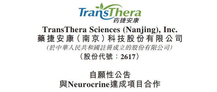 11月3日,药捷安康(南京)科技股份有限公司发布公告宣布,公司与Neurocrine Biosciences, Inc.(纳斯达克: NBIX)订立一项付特许权使用费的专利转让及研究合作协议,以开发NLRP3抑制剂,用于治疗多种疾病。
