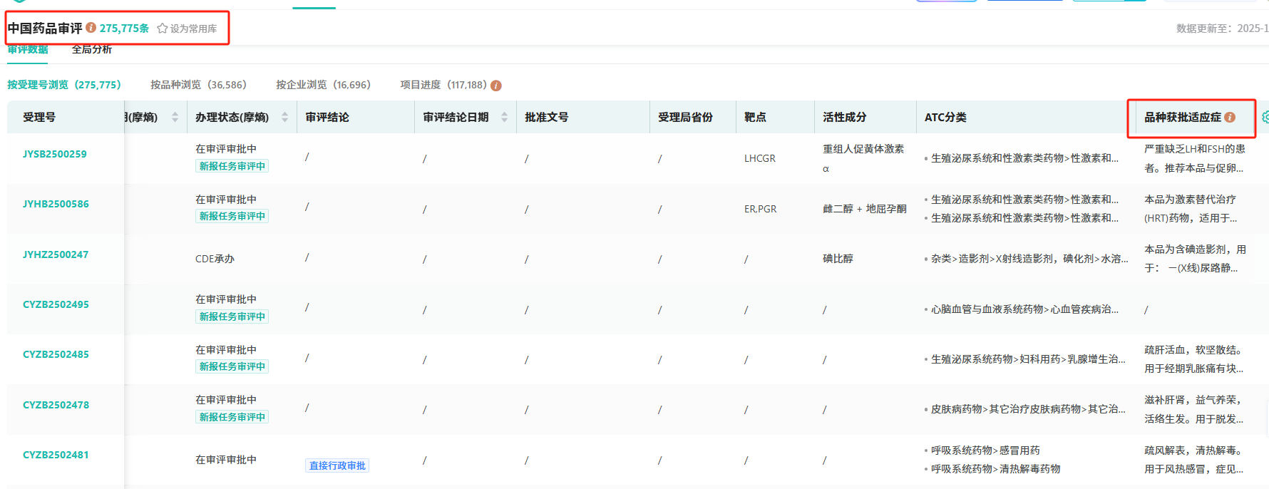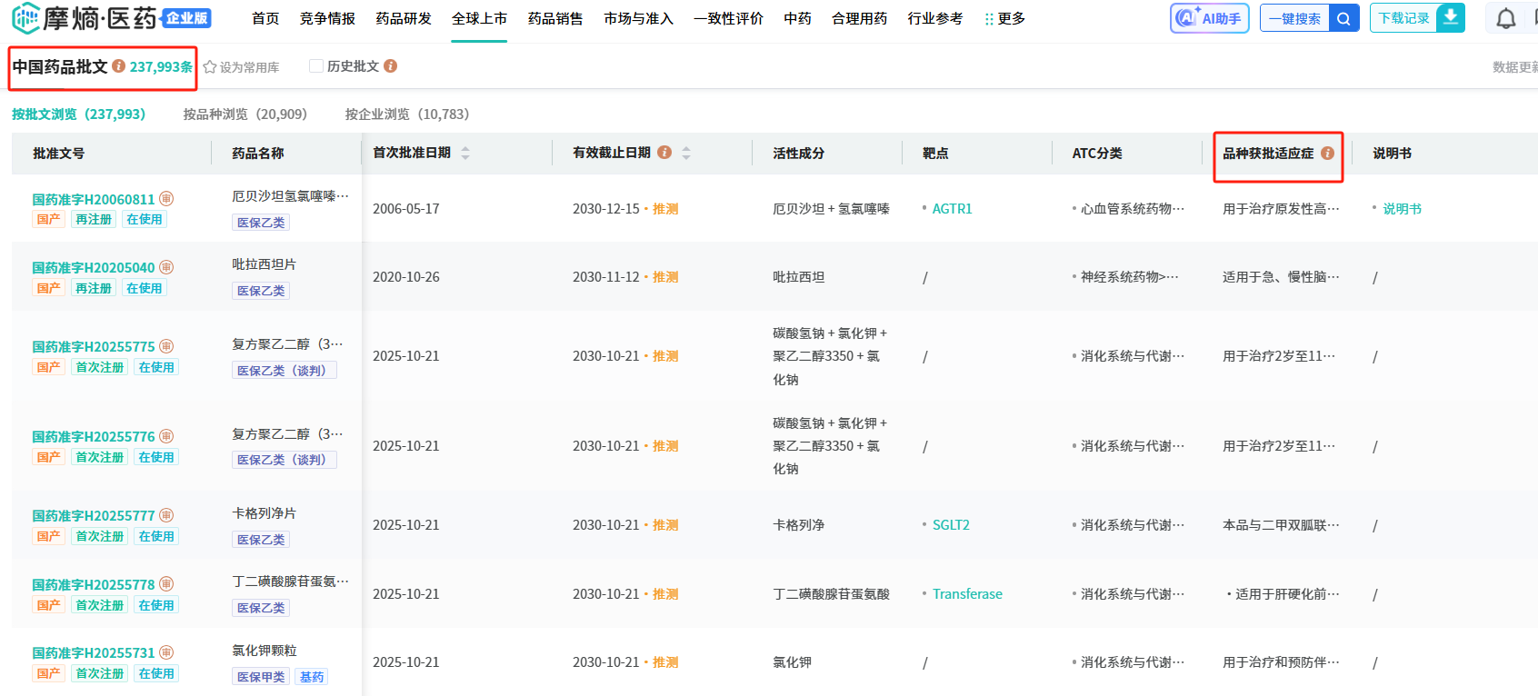 同时,药品研发与全球上市数据库群下的中国药品审评、中国药品批文数据库也同步新增了该检索字段及数据。
