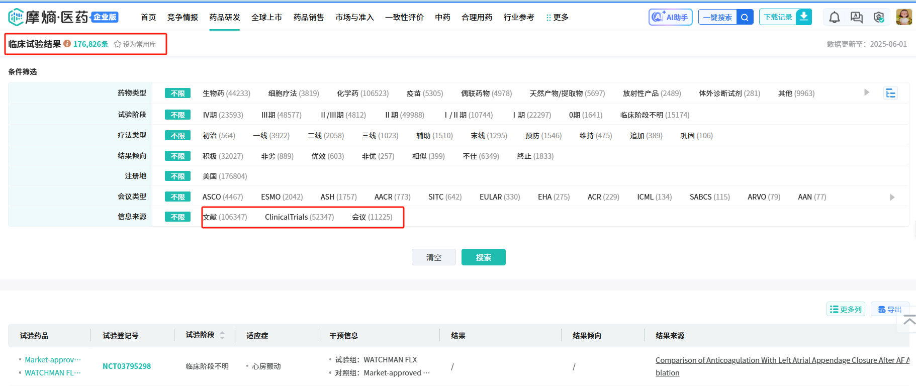新增文献、ClinicalTrials等权威数据源,现已收录超过17万条临床试验信息,为用户提供更全面、可靠的临床数据支撑。