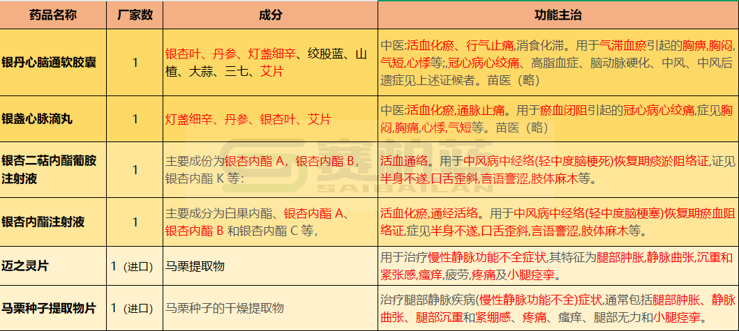 2、180个药品中独家剂型38个,独家品种6个,独家品种分别为银丹心脑通软胶囊+银盏心脉滴丸同采购组;银杏二萜内酯葡胺注射液+银杏内酯注射液同采购组;迈之灵片+马栗种子提取物片同采购组。