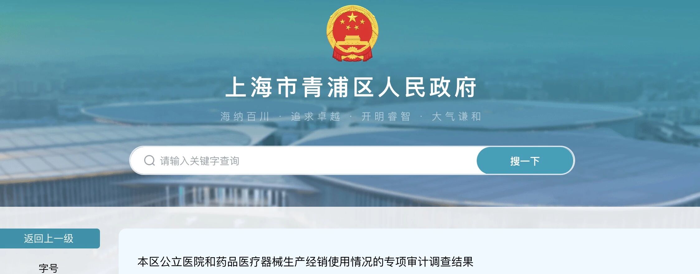 近日,上海青浦区人民政府发布专项审计调查结果,涉及青浦区卫生健康委员会等3家单位,时间跨度为2022年1月至2024年6月,多项结果与医疗器械采购相关。如中山医院青浦分院14台医疗设备采购决策不规范,涉资916.94万元;9个项目有关联供应商投标,涉资184.9万元;2家医院19个采购项目不规范,涉资987.94万元。