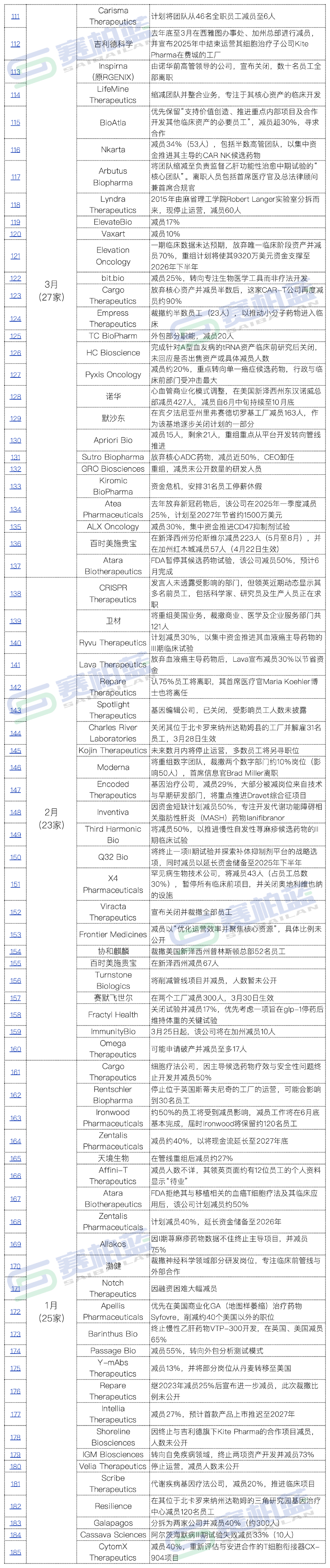 据赛柏蓝不完全统计(综合BioSpace信息),2025年以来全球至少有185家医药企业(未去重)进行了人员优化,但进入10月后减员人数方面已有所放缓(文末附完整表格)。