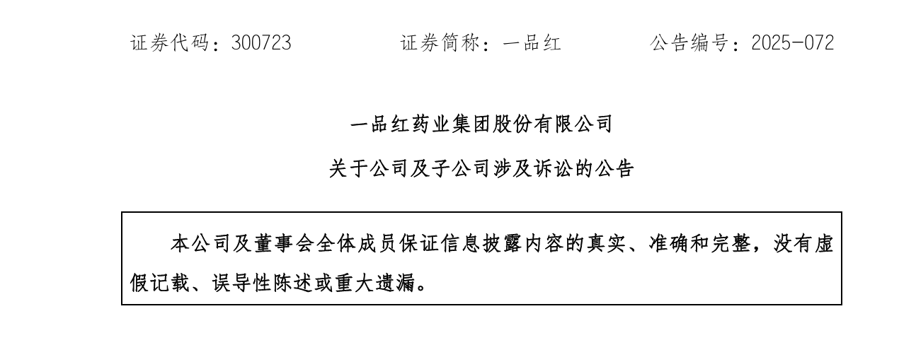 这起官司对于正处于业绩承压期的一品红而言,无疑是雪上加霜。
