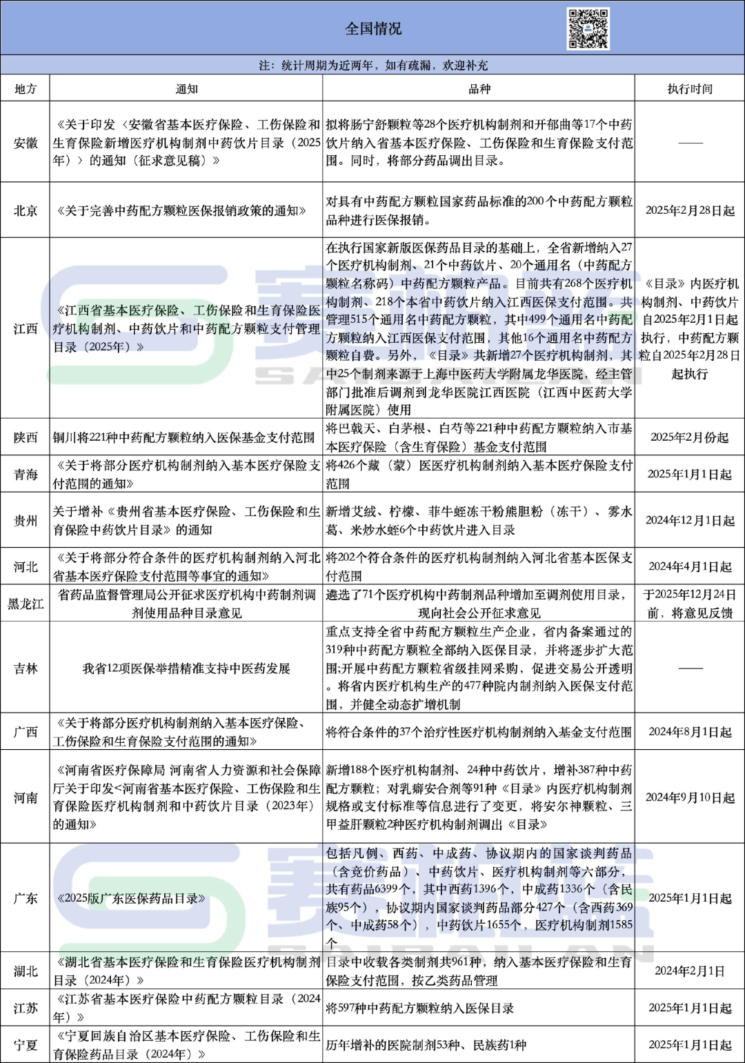 赛柏蓝梳理发现,截至目前,安徽、黑龙江、江西等地按照国家和省有关规定,陆续确定本地纳入医保支付范围的医疗机构制剂和中药饮片。