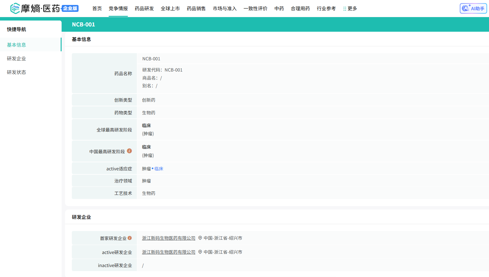 截图来源:摩熵医药数据库-全球药物研发数据库