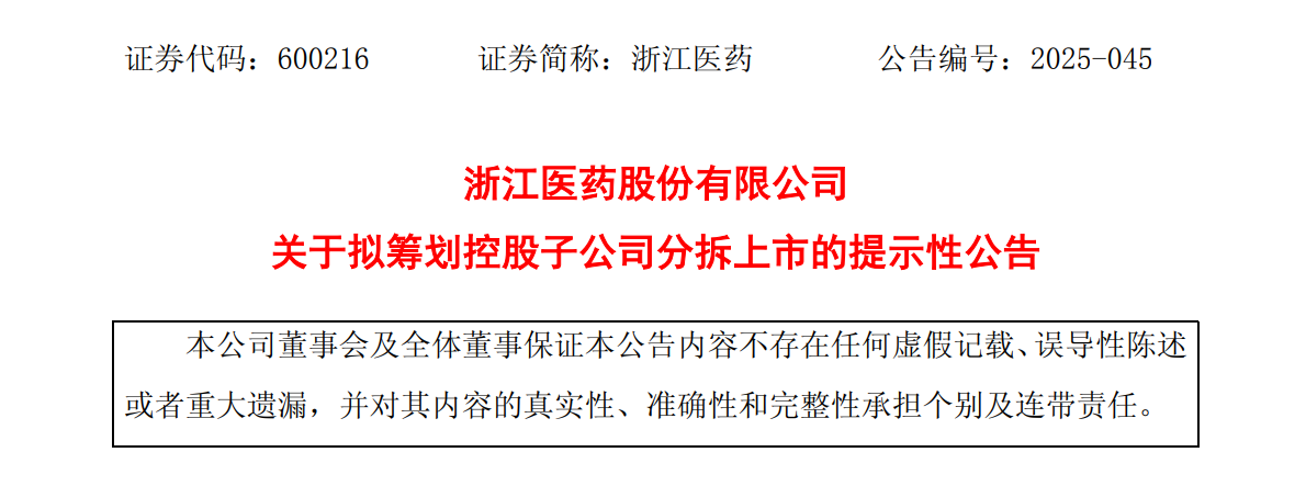 近日(11月27日),浙江医药发布公告宣布一项重大资本规划:公司拟筹划分拆控股子公司新码生物于香港联交所上市。本次分拆旨在为更好地促进浙江医药药品生物制剂板块的发展,充分发挥资本市场优化资源配置的作用,拓宽融资渠道,从而提升公司整体的盈利能力和核心竞争力。
