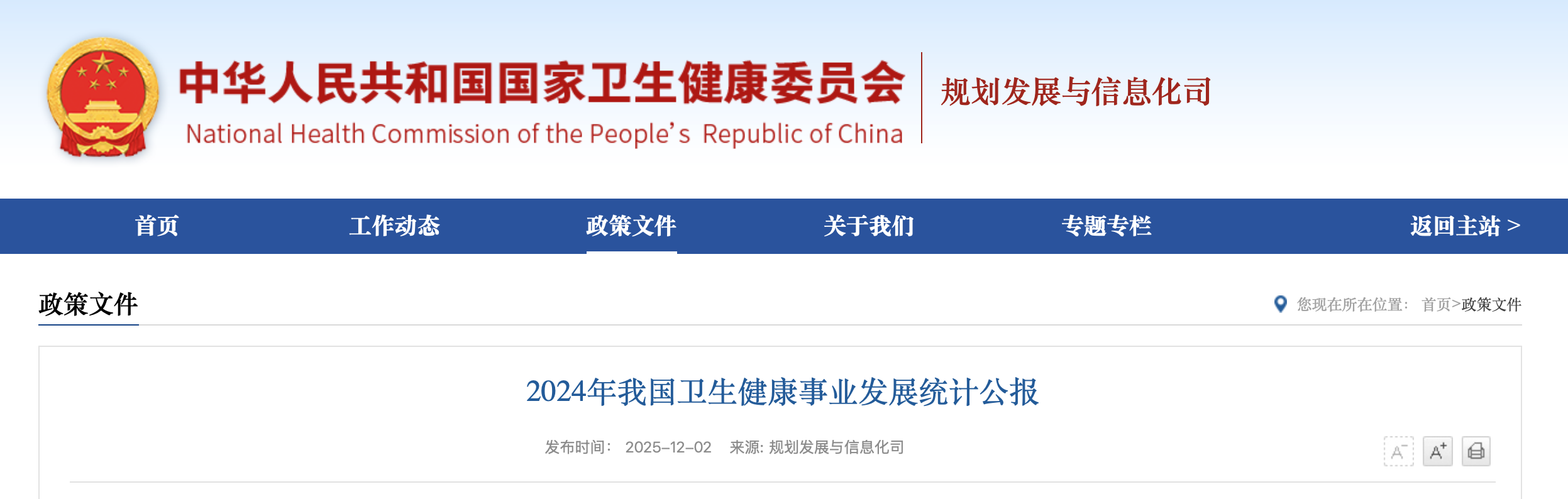 刚刚(12月2日),国家卫健委发布《2024年我国卫生健康事业发展统计公报》(注:以下为部分摘取)。