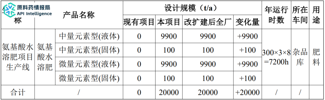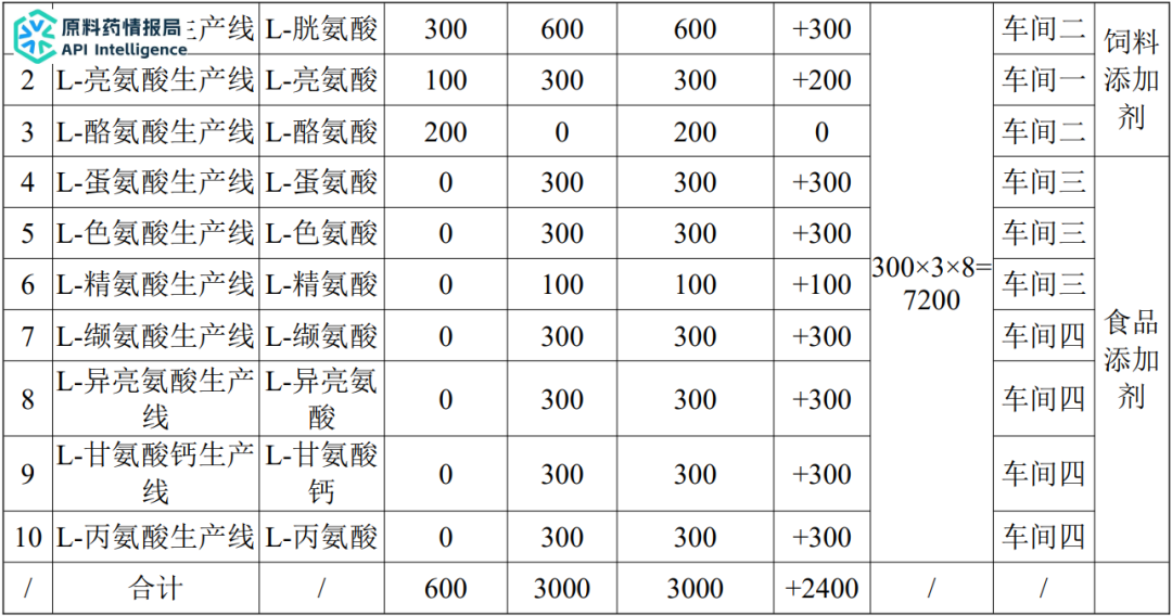 备注:原生产线生产胱氨酸、亮氨酸、酪氨酸的产品质量等级为食品级;技改后产品等级为饲料级。