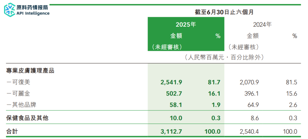 2025年上半年营收31.1亿元,增长22.5%,较2024年全年57.2%的增速大幅下滑,可复美营收占比达82%;归母净利润11.82亿元,增长20.2%,增速低于营收,受毛利率下滑和费用增加影响。