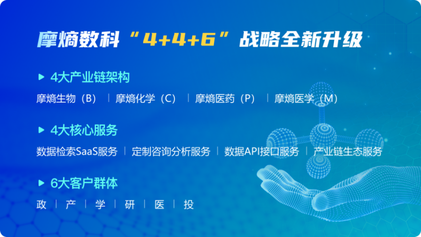 该战略升级基于“BCPM”四大底层数据架构,即摩熵生物(B)、摩熵化学(C)、摩熵医药(P)、摩熵医学(M)。通过精准布局与持续优化,构建起了稳固的数据基石,确保了数据的全面性、精准度与时效性,为生命科学领域的深度探索与创新实践提供了坚实的数据支撑。