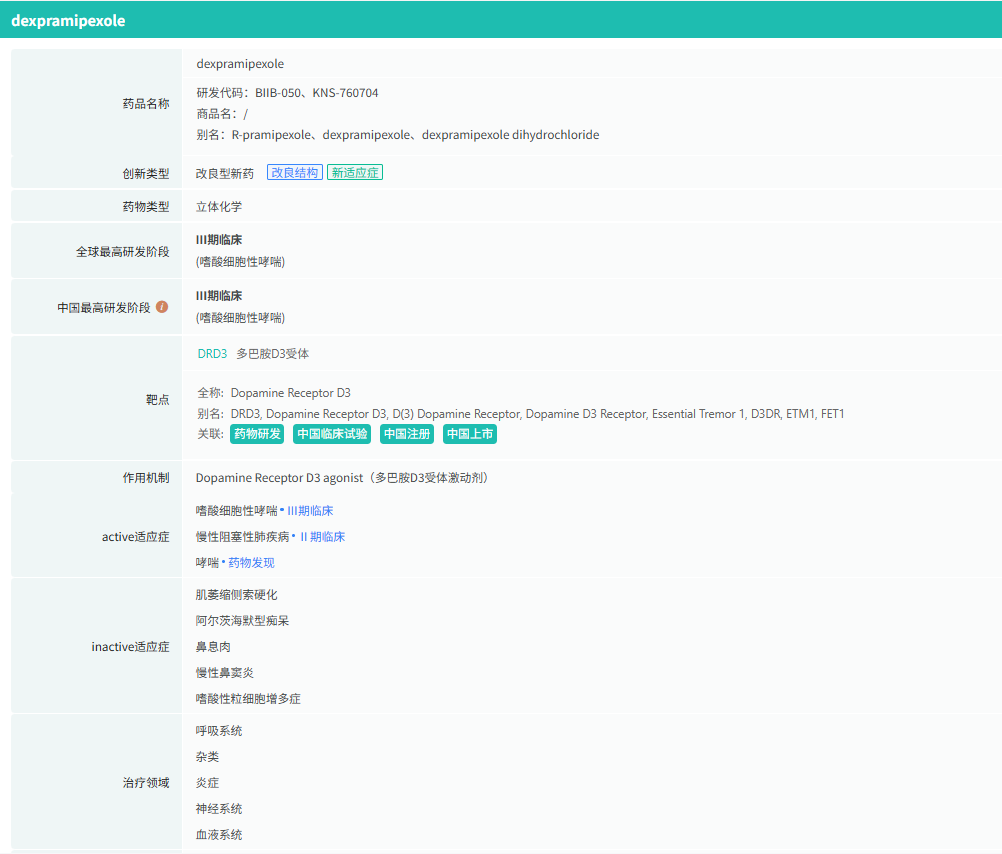 Dexpramipexole 的研发史本质是一部 “疗效补救史”,但两次布局均因核心疗效不足陷入困境,暴露其分子机制与临床需求的错配: