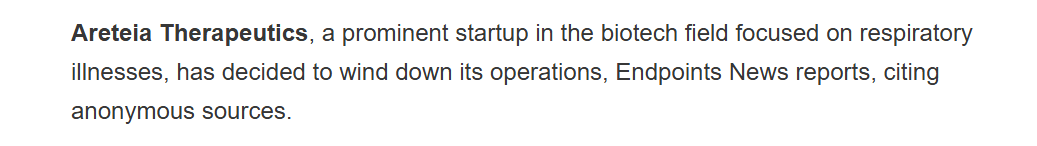 近期,曾凭借 4.25 亿美元 A 轮融资轰动行业的 Biotech 公司 Areteia Therapeutics 传出关闭消息,其唯一核心产品 dexpramipexole 的全球研发(含中国已启动的临床试验)或彻底搁浅。