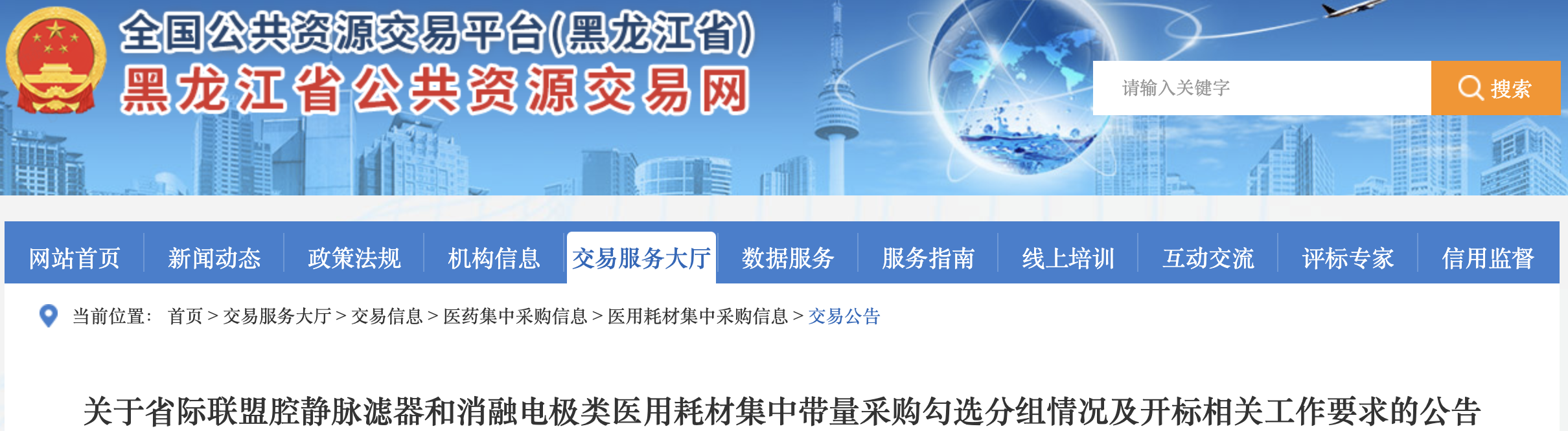 黑龙江牵头的23省联盟(腔静脉滤器、消融电极)将于12月31日在哈尔滨开标。