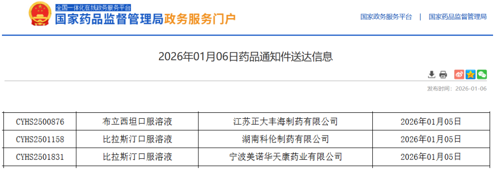 - 2026年1月6日,正大丰海(江苏正大丰海制药)再次收到不予批准通知。