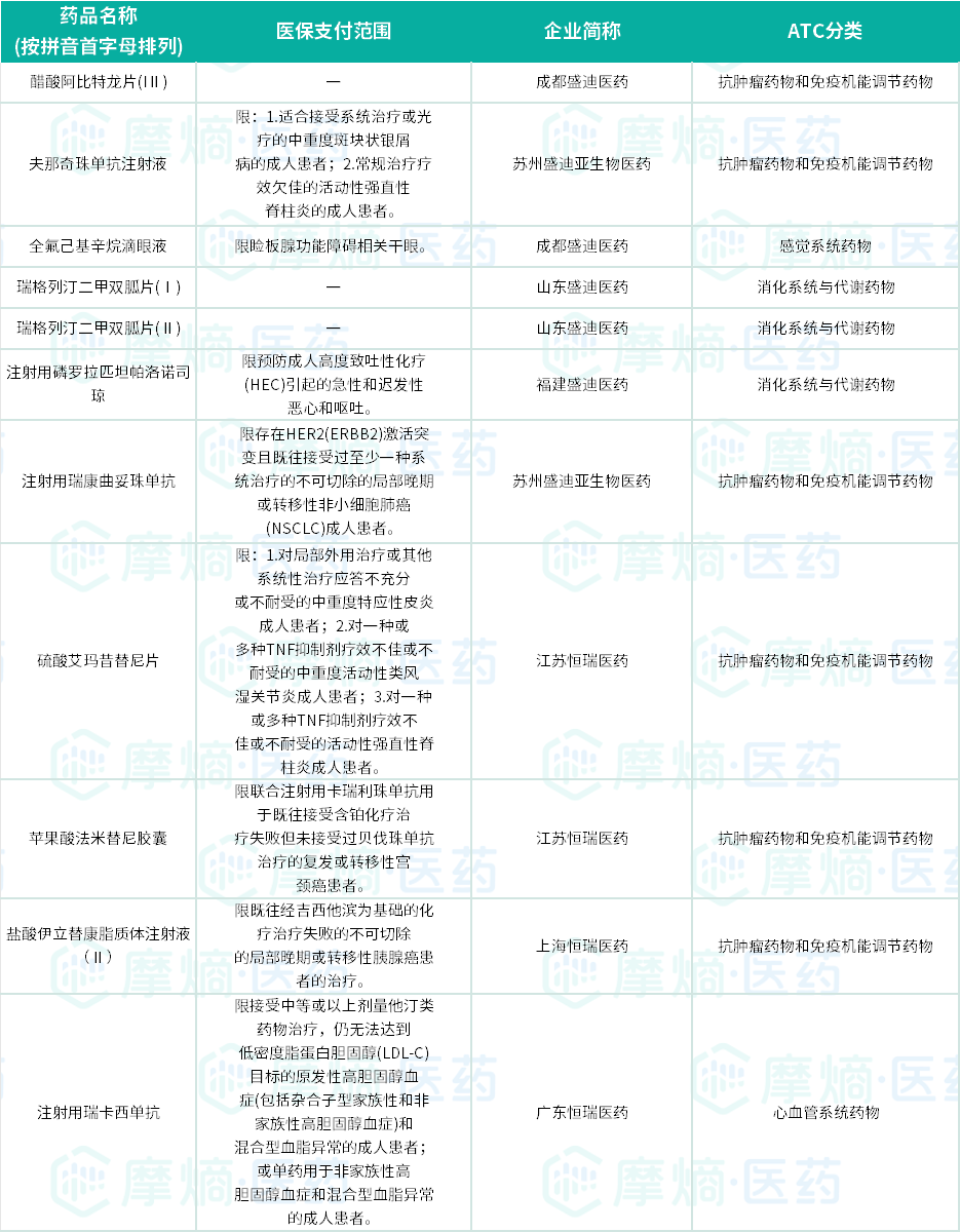 恒瑞医药成为最大赢家,11个新增品种覆盖抗肿瘤、消化系统与代谢药物等多个领域。科伦药业、正大天晴、康缘药业等传统药企,以及泽璟制药、艾力斯等创新型企业均有斩获。