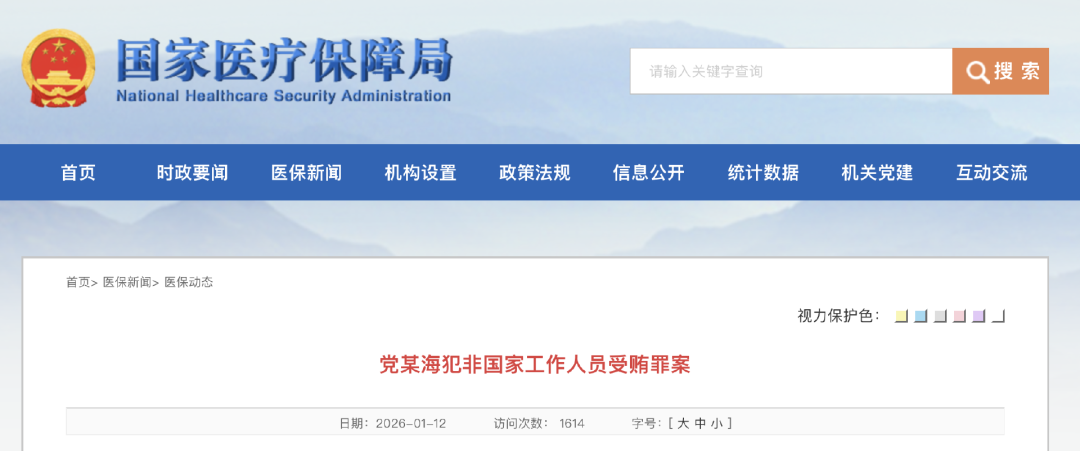 1月12日,国家医保局通报了一起涉及六家医药企业的案件。黑龙江省铁力市人民法院的判决显示,双丰林业局职工医院内科医生党某海在2012年至2023年期间,利用处方权收受医药代表回扣共计789,110元。法院以非国家工作人员受贿罪判处其有期徒刑一年八个月,缓刑二年,并处罚金10万元,违法所得予以没收。