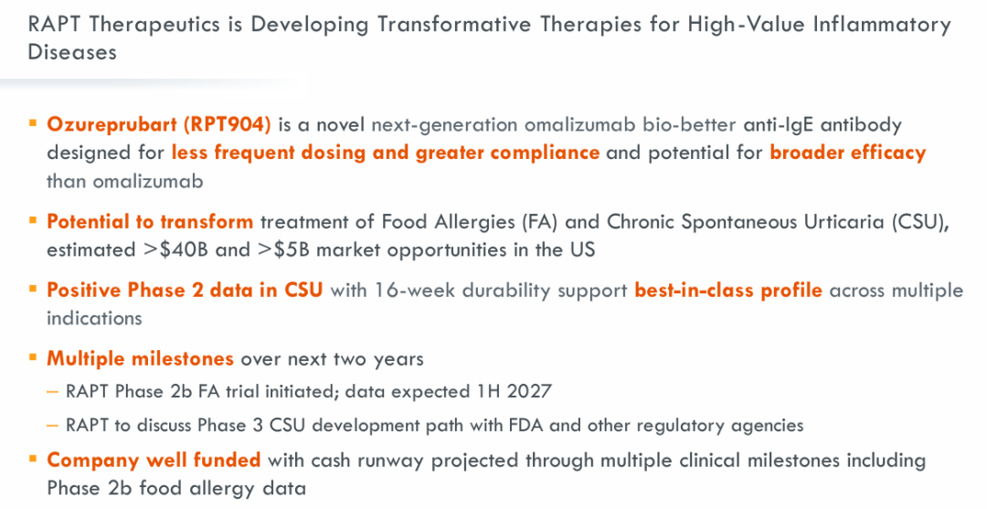 1. RAPT引进济民可信长效IgE抗体JYB1904布局食物过敏治疗市场,股价飙升111%