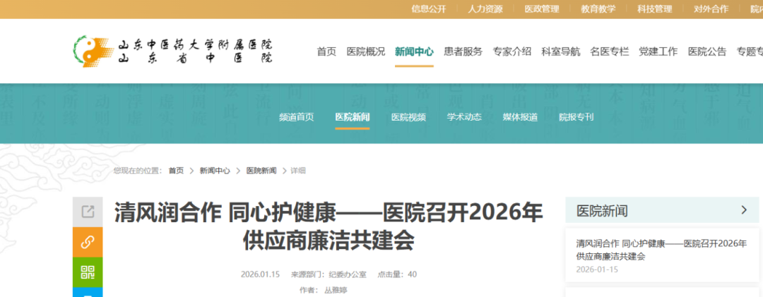 作为全国最早成立的省级中医医院之一(始建于1955年),山东省中医院的动作具有风向标意义。会上同步发布的《供应商代表来访和接待管理办法》,更以“三定三有”原则(定时间、定地点、定人员;有预约、有流程、有记录)将管理刚性化。用医院负责人的话说:“今天划清‘安全区’和‘禁区’,是为了明天双方都能长久合作。”