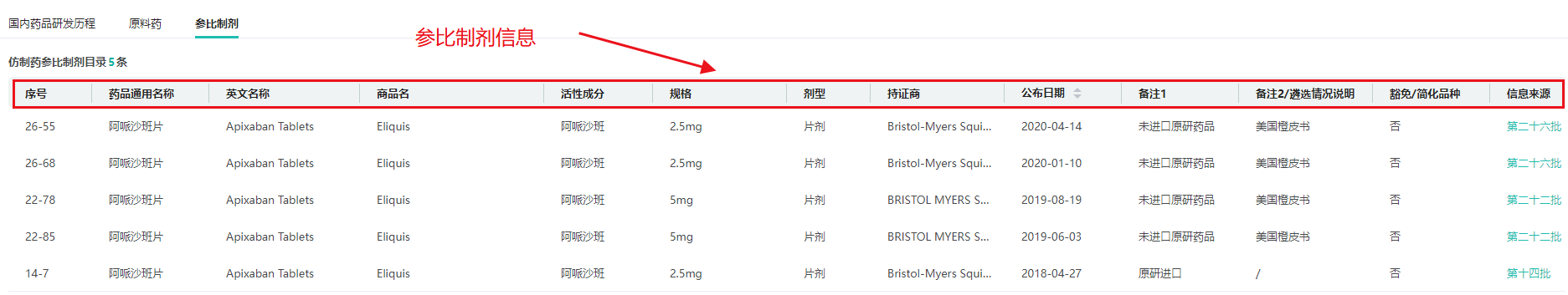 参比制剂信息:提供参比制剂情况,帮助企业了解市场先导产品,为仿制药开发提供参考。