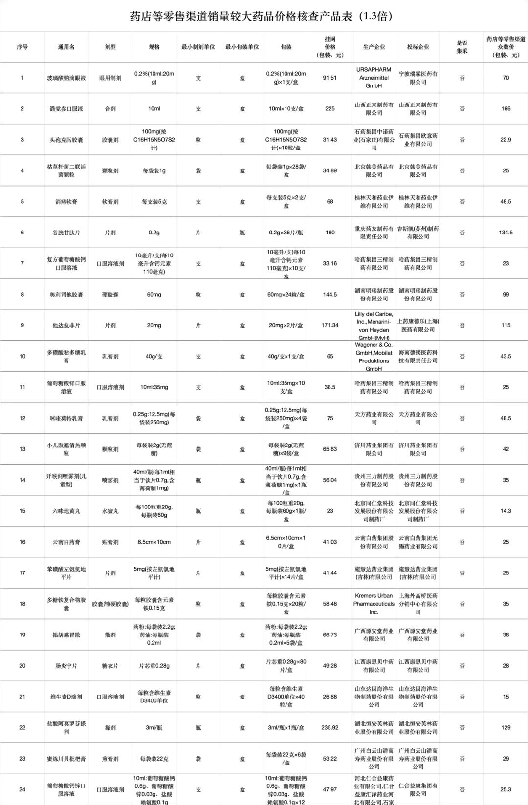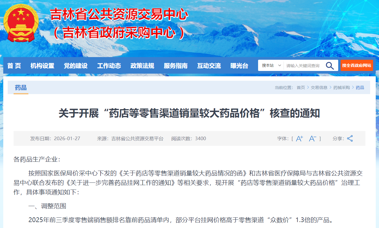 本次吉林核查的48个品种中,口服溶液剂与片剂各占12.5%,胶囊剂占10.4%。不难看出,口服剂型因流通广、价差易监测,成为院内外价格核查的重点靶区,凸显零售端价格敏感度与监管聚焦度的同步抬升。