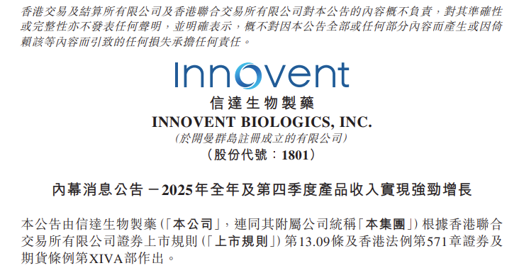 2025年第四季度,信达生物延续强劲势头,实现总产品收入约33亿元,同比增长超60%,为全年画下亮眼句号。