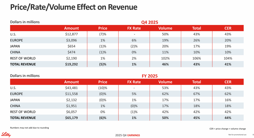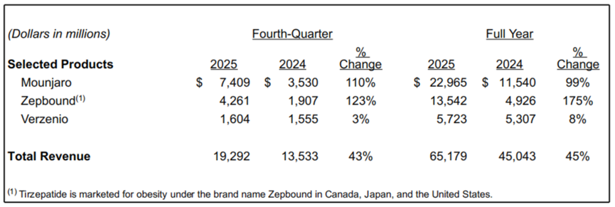 近日,礼来 公布了2025年全年财报,全年总营收达651.79亿美元(+44%)。全年研发支出133.37亿美元(+21%),占总营收20%。