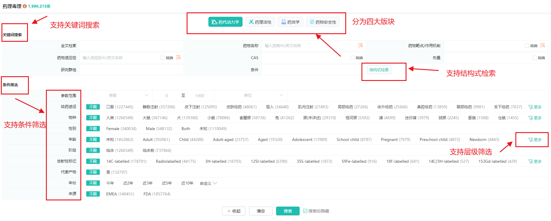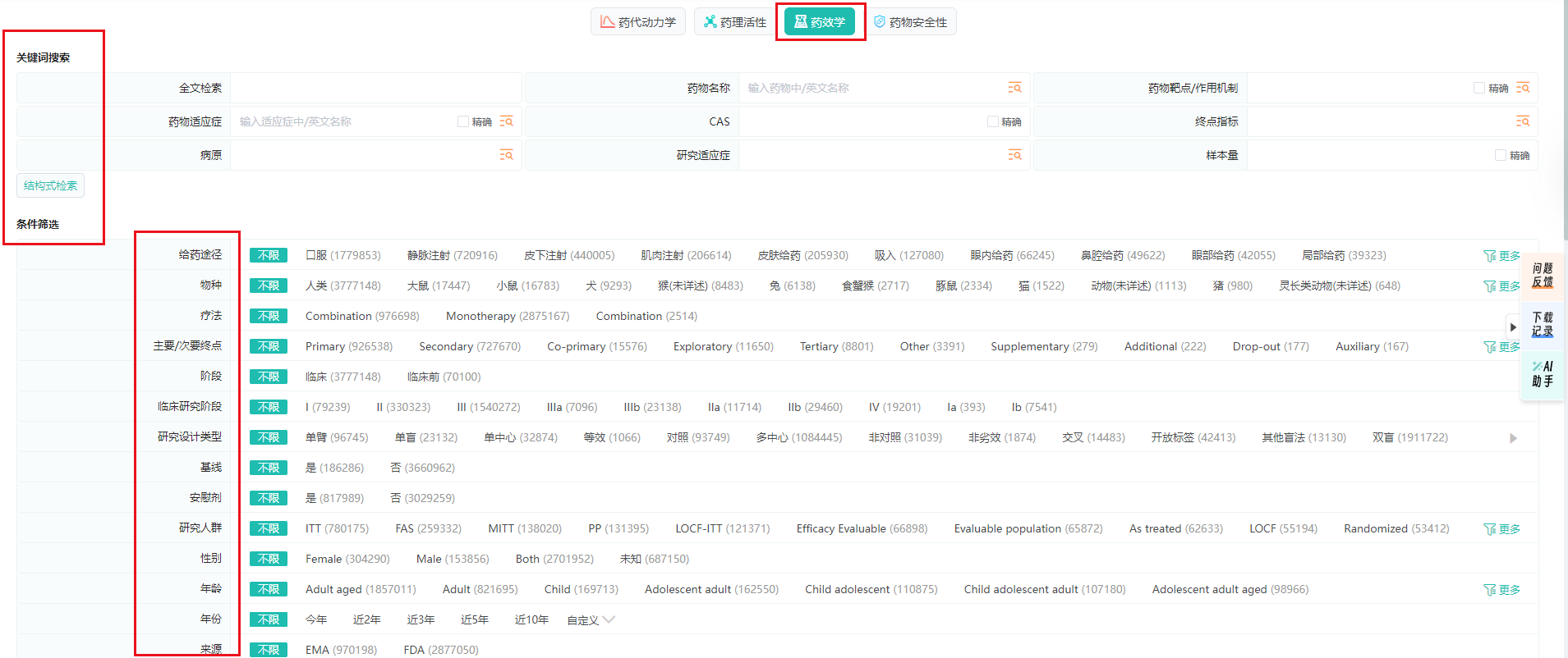 拥有超过300万条药代动力学、300万+药理活性、300万+药效及1000万+不良反应记录,为用户提供了海量且多样化的数据资源。