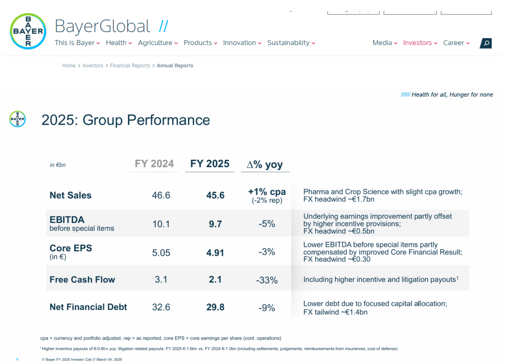 站在2026年的起点,拜耳的复苏之路仍需跨越“亏损”与“债务”两座大山。管理层短期内仍需直面约310亿欧元的净财务债务压力,去杠杆仍是首要任务。