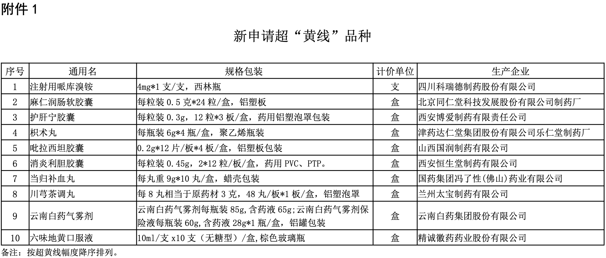 具体来看,被列为重点监控的品种10个,新申请超“黄线”品种10个,原在库超“黄线”品种10个,未通过公允性品种10个。