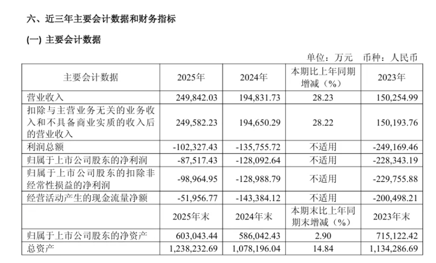 3月13日晚,君实生物发布2025年财报,公司2025年实现营业收入24.98亿元,同比增长28.23%;归属于上市公司股东的净利润-8.75亿元,较2024年同期-12.81亿元同比减亏31.68%;扣非归母净利润-9.90亿元,同比减亏23.28%;经营活动产生的现金流量净额-5.20亿元,较上年同期净流出显著改善。