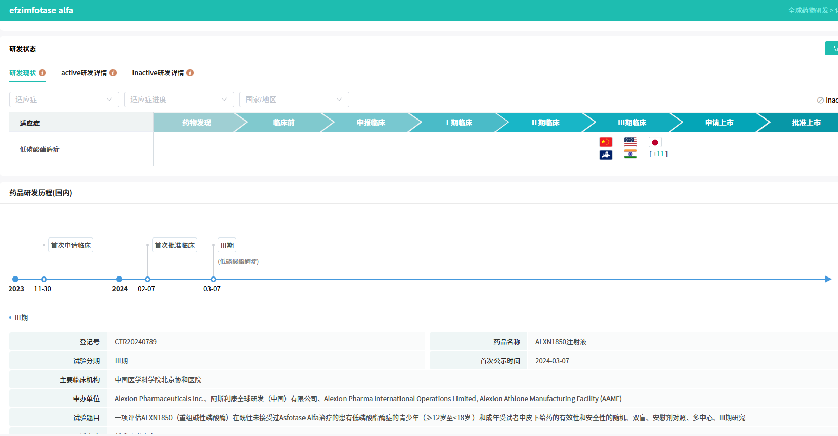 Alexion首席执行官Marc Dunoyer表示:“Efzimfotase alfa是首个在如此广泛的HPP患者群体中评估疗效的研究,涵盖了从儿童到成人、从骨骼到非骨骼表现的异质性特征。这些数据有力支持了它改变HPP治疗模式的潜力。”