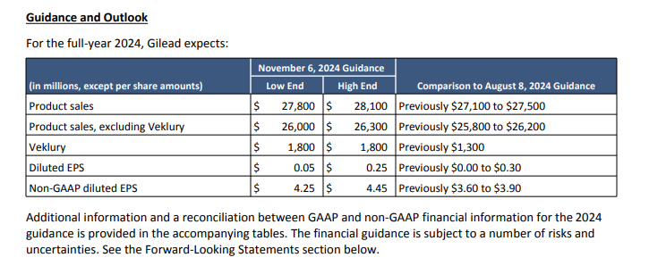 吉利德重新调整了全年业绩指引,将其产品总销售预期上调至278-281亿美元,高于此前的271-275亿美元。
